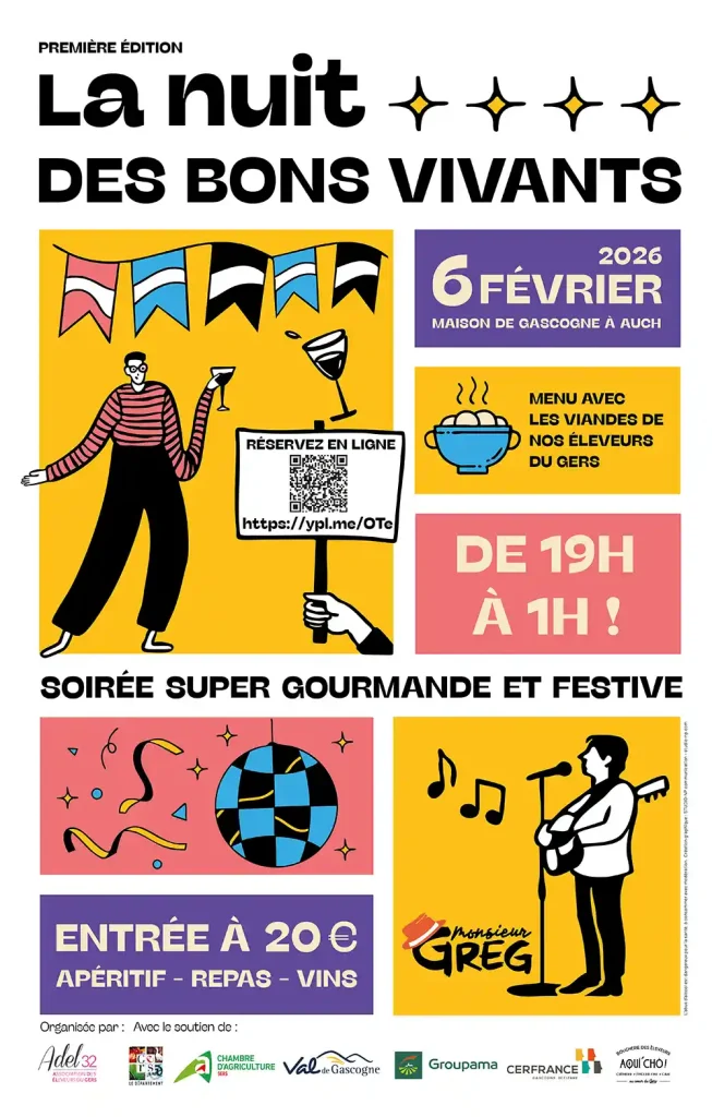 Vendredi 6 février 2026, de 19h à 1h du matin, participez à notre grande soirée gourmande et festive des éleveurs du Gers !